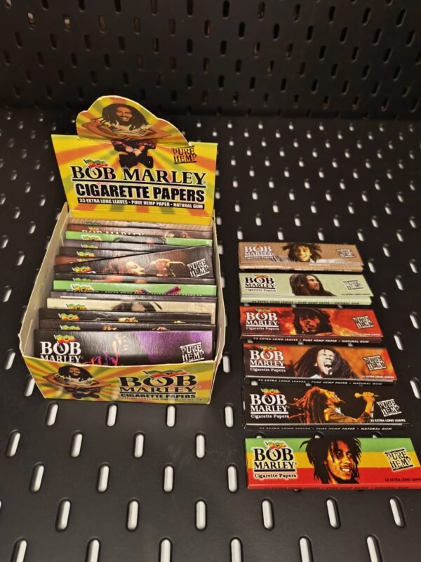 Bob Marley Pure Hemp King Size Cigarette Rolling Papers feature extra long leaves and the iconic Bob Marley design. Each booklet includes 33 leaves made from pure hemp for a smooth, natural roll. Designs are assorted and sent at random.